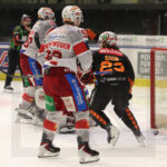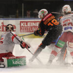 GRAZ, AUSTRIA, 22, Feb, 2026, Moser Medical Graz 99ers vs. EC KAC. Image shows Joshua TEVES #4 (EC KAC), Paul HUBER #52 (Moser Medical Graz 99ers) & Sebastian DAHM #32 (EC KAC). Photo: Werner Krainbucher