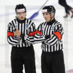 TRENCIN, SLOVAKIA, 23, Apr, 2026, U18 Men’s Worlds, CAN vs. LAT. Image shows referees during a commercial break. Photo: Werner Krainbucher