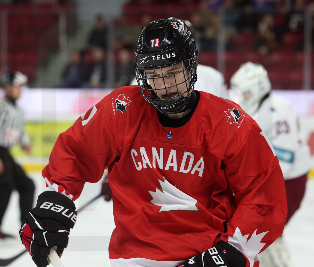 TRENCIN, SLOVAKIA, 23, Apr, 2026, U18 Men’s Worlds, CAN vs. LAT. Image shows Tynan LAWRENCE #11 (Canada). Photo: Werner Krainbucher