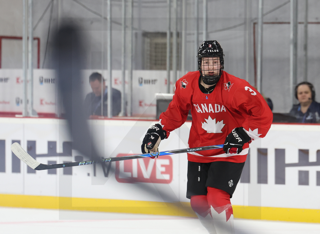 TRENCIN, SLOVAKIA, 22, Apr, 2026, U18 Men’s Worlds, CAN vs. SVK. Image shows Carter HICKS #3 (Canada). Photo: Werner Krainbucher