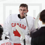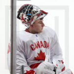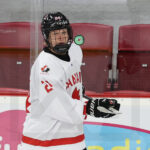TRENCIN, SLOVAKIA, 27, Apr, 2026, U18 Men’s Worlds, FIN vs. CAN. Image shows Gavin BETTS #1 (Canada) during commercial break. Photo: Werner Krainbucher