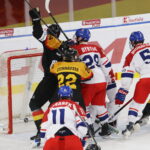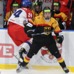 BRATISLAVA, SLOVAKIA, 25, Apr, 2026, U18 Men’s Worlds, GER vs. CZE. Image shows Simon KATOLICKY #24 (Czech Republic) & Luis BECKER #12 (Germany). Photo: Werner Krainbucher