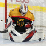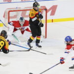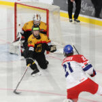 BRATISLAVA, SLOVAKIA, 25, Apr, 2026, U18 Men’s Worlds, GER vs. CZE. Image shows game winning goal in overtime from Tobias KRESTAN #19 (Germany). Photo: Werner Krainbucher