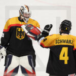 BRATISLAVA, SLOVAKIA, 25, Apr, 2026, U18 Men’s Worlds, GER vs. CZE. Image shows Max BOLLE #1 (Germany) & Jonas SCHWARZ #4 (Germany) after their 1:1 tie. Photo: Werner Krainbucher