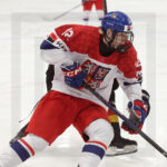 BRATISLAVA, SLOVAKIA, 25, Apr, 2026, U18 Men’s Worlds, GER vs. CZE. Image shows art shot from Adam KLAUS #23 (Czech Republic). Photo: Werner Krainbucher