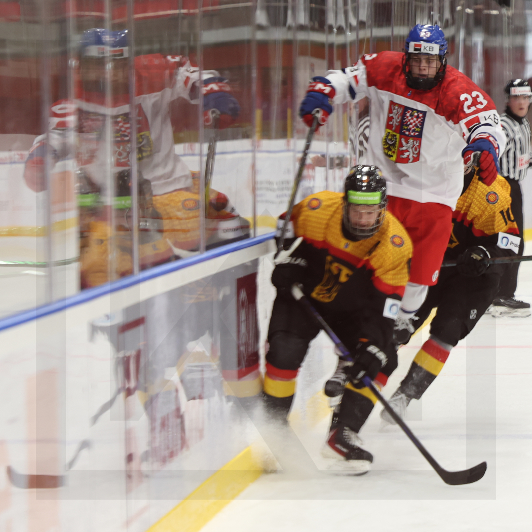 BRATISLAVA, SLOVAKIA, 25, Apr, 2026, U18 Men’s Worlds, GER vs. CZE. Image shows art shot from Adam KLAUS #23 (Czech Republic). Photo: Werner Krainbucher
