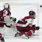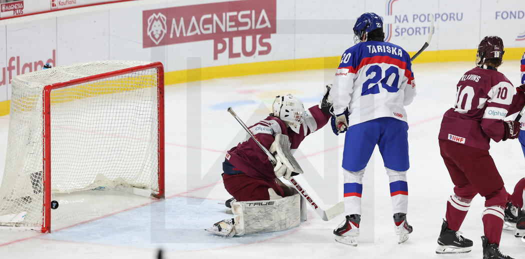 TRENCIN, SLOVAKIA, 27, Apr, 2026, U18 Men’s Worlds, LAT vs. SVK. Image shows first Slovak goal. Photo: Werner Krainbucher