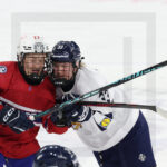 TRENCIN, SLOVAKIA, 22, Apr, 2026, U18 Men’s Worlds, NOR vs. FIN. Image shows Max LAATIKAINEN #4 (Finland) & Felix TIMRAZ-WESTIN #30 (Norway). Photo: Werner Krainbucher