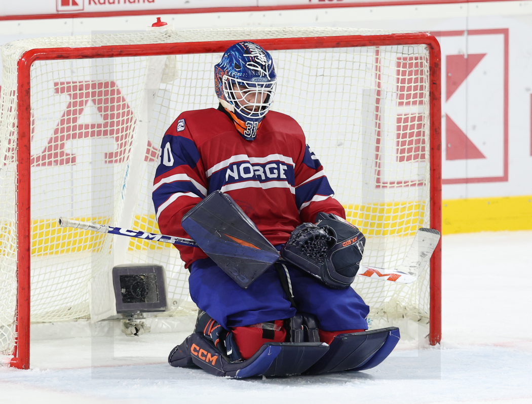 TRENCIN, SLOVAKIA, 22, Apr, 2026, U18 Men’s Worlds, NOR vs. FIN. Image shows Felix TIMRAZ-WESTIN #30 (Norway). Photo: Werner Krainbucher