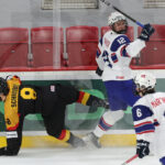 TRENCIN, SLOVAKIA, 29, Apr, 2026, U18 Men’s Worlds, GER vs. NOR. Image shows game winner for Norway. Photo: Werner Krainbucher