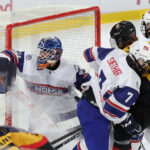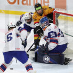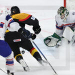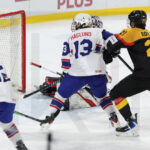 TRENCIN, SLOVAKIA, 29, Apr, 2026, U18 Men’s Worlds, GER vs. NOR. Image shows game tieing goal for Team Norway. Photo: Werner Krainbucher