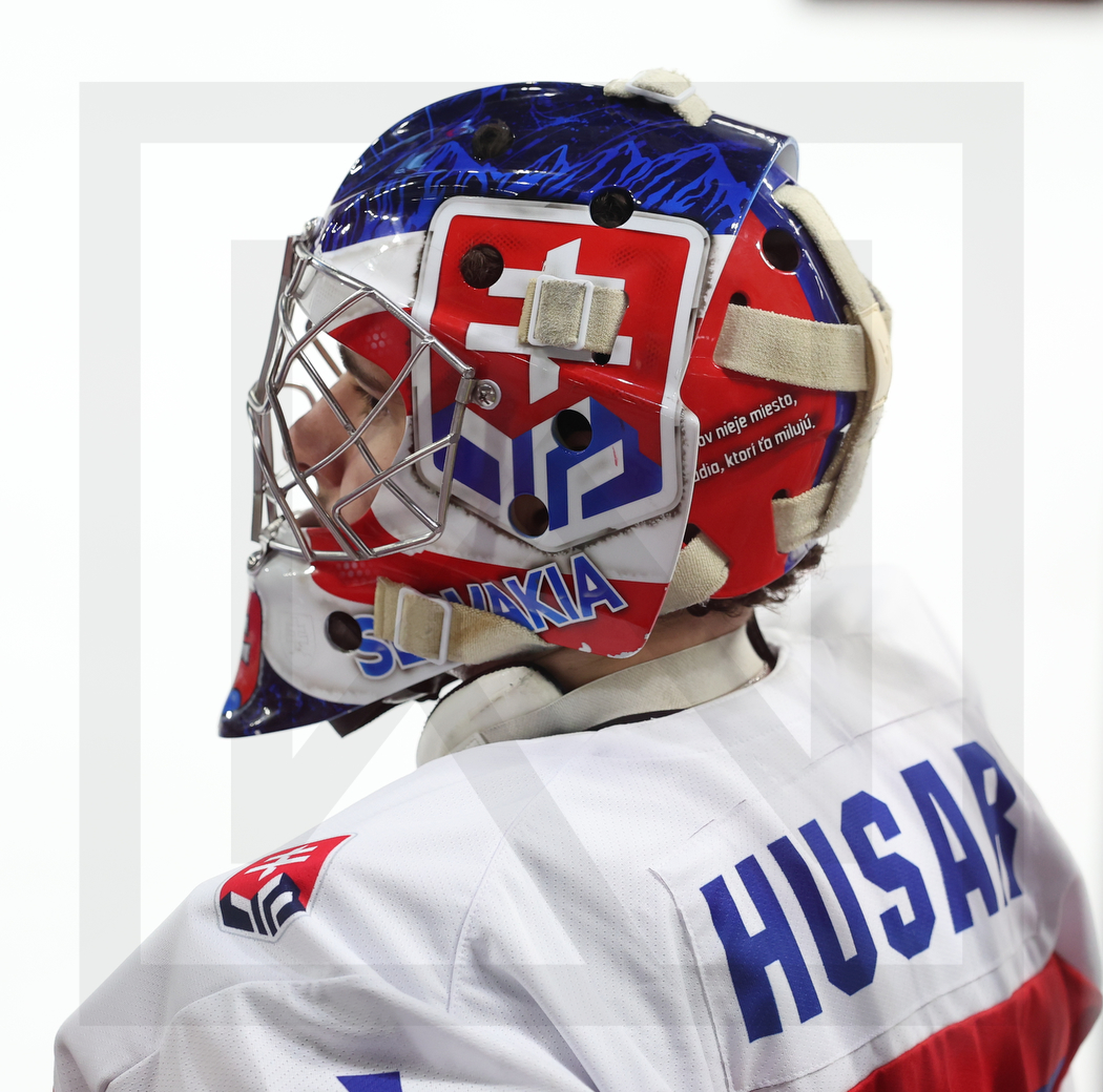 TRENCIN, SLOVAKIA, 23, Apr, 2026, U18 Men’s Worlds, SVK vs. NOR. Image shows mask of Jakub HUSAR #1 (Slovakia). Photo: Werner Krainbucher