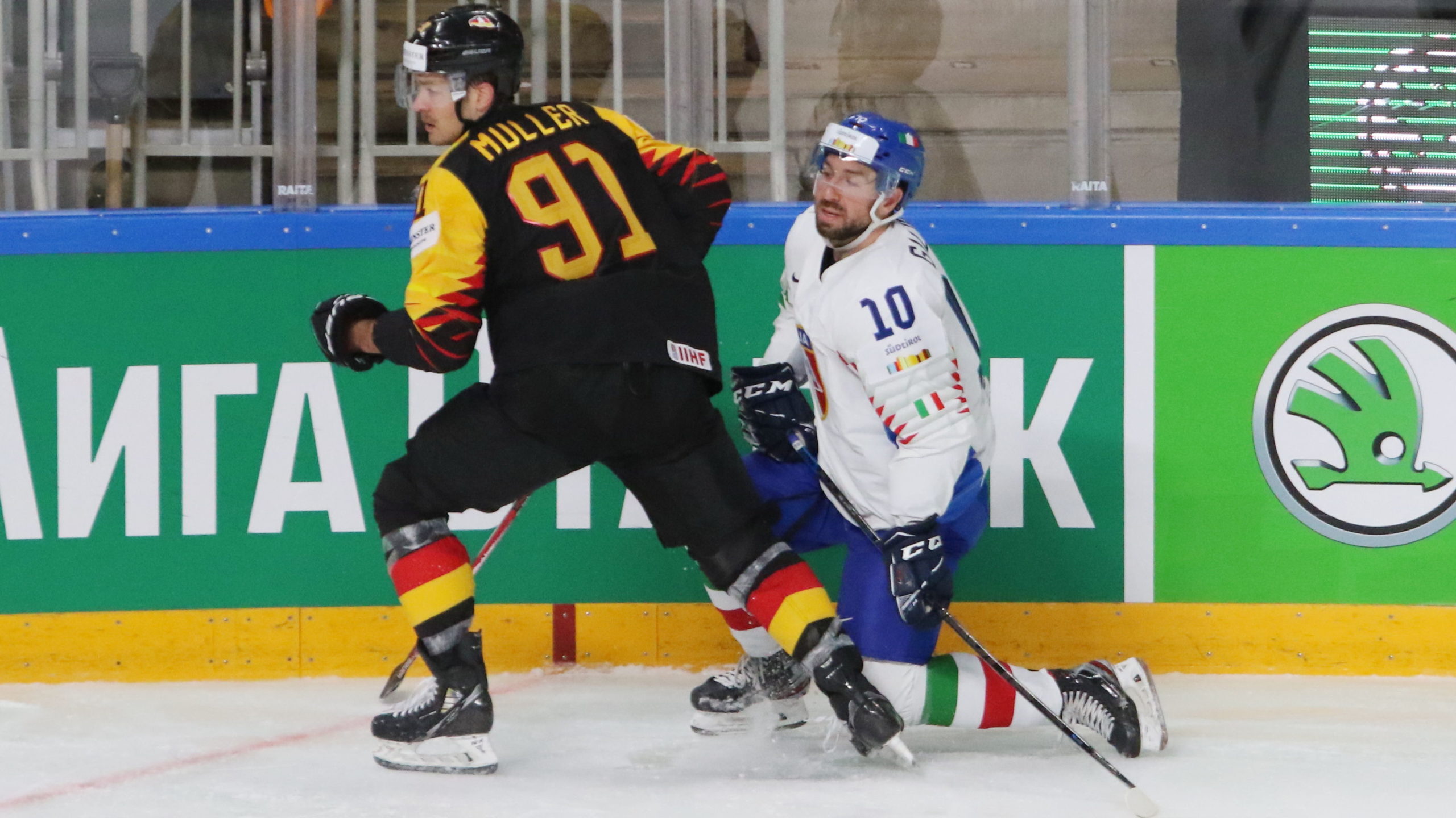 pf6T4A7456 21. Mai 2021 2560 × 1440 Photo Gallery: IIHF World Championship 2021 GER – ITA 9:4 IIHF World Championship 2021 GER – ITA Moritz Müller #91, Stefano Giliati #10 © Puckfans.at/Andreas Robanser