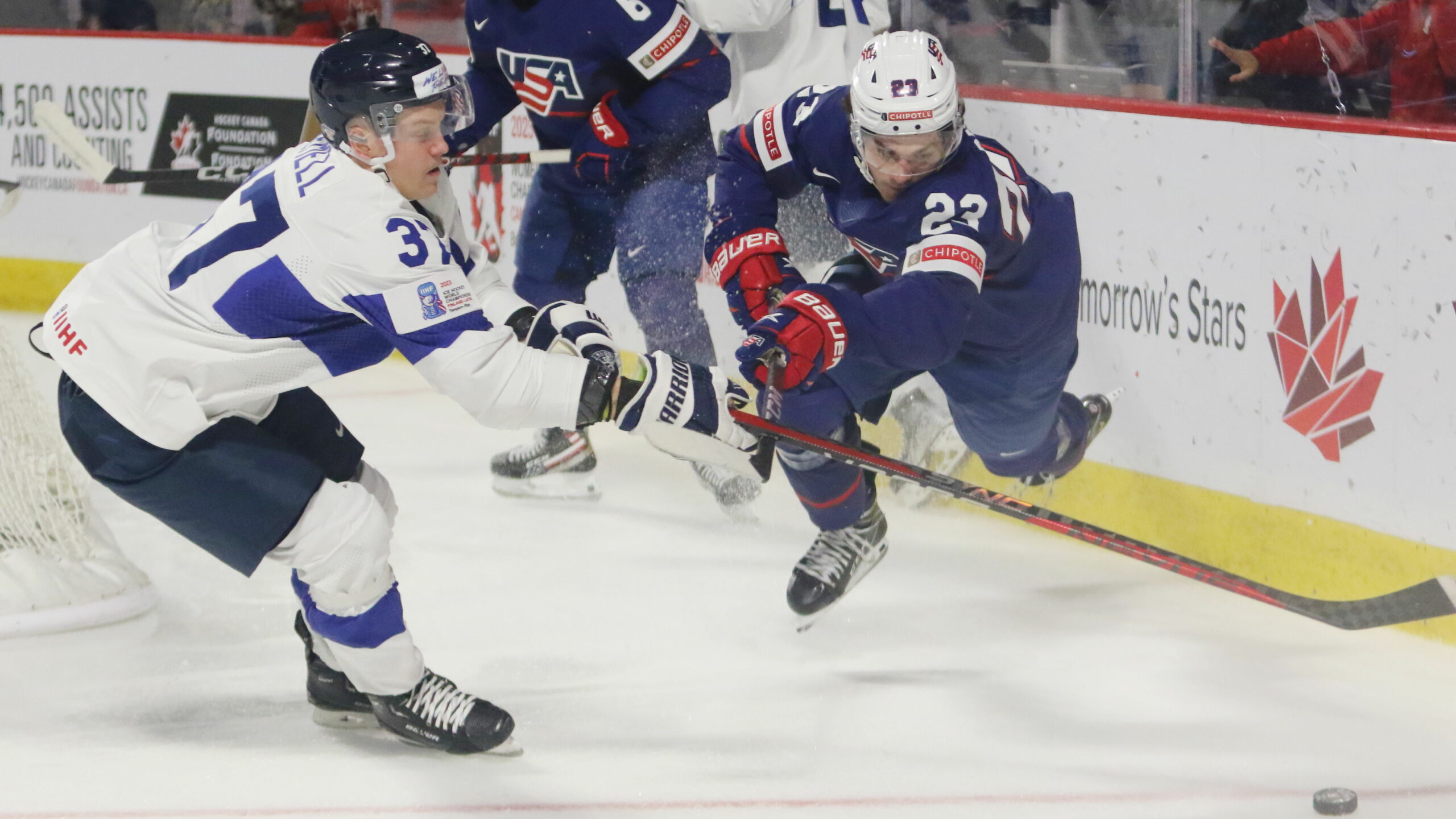 6T4A5096 1. Januar 2023 2560 × 1440 Photo Gallery IIHF World Juniors 2023 USA – FIN 6:2 IIHF World Juniors 2023 USA – FIN Joakim Kemell #37, Jack Peart #23 Avenir Centre, Moncon, © Puckfans.at / Andreas Robanser