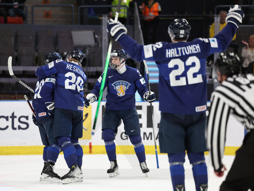 GOTHENBURG, SWEDEN, 29.Dec. 2023 – World Juniors, LAT vs. FIN. Image shows Finnish goal celebration. Photo: Werner Krainbucher