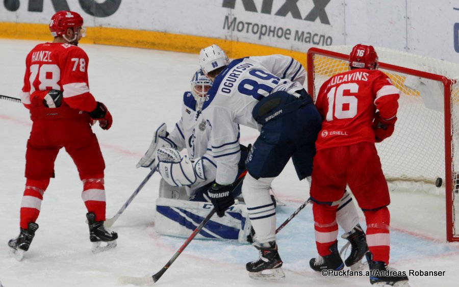 6T4A2208 6. März 2020 900 × 563 Photo Gallery KHL Conf. 1/4Finals Game 3 Spartak Moscow – Dynamo Moscow Spartak Moscow – Dynamo Moscow Robin Hanzl #78, Ivan Bocharov #60, Dmitri Ogurtsov #89, Kaspars Daugavins #16 Conference 1/4Finals Game 3, KHL Playoffs 2020 CSKA Arena, Moscow ©Puckfans.at/Andreas Robanser