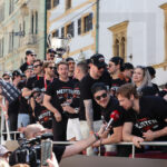 GRAZ, AUSTRIA, 26, Apr, 2026, Meisterfeier Graz 99ers. Image shows 99ers in the open deck bus in the Herrengasse. Photo: Werner Krainbucher