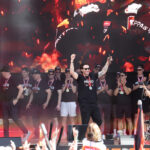 GRAZ, AUSTRIA, 26, Apr, 2026, Meisterfeier Graz 99ers. Image shows Andreas Gabalier sings a few songs for the team. Photo: Werner Krainbucher