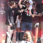 GRAZ, AUSTRIA, 26, Apr, 2026, Meisterfeier Graz 99ers. Image shows Manuel GANAHL #17 (Moser Medical Graz 99ers) with son Pius. Photo: Werner Krainbucher
