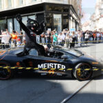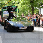 GRAZ, AUSTRIA, 26, Apr, 2026, Meisterfeier Graz 99ers. Image shows Pucky driving with the 99ers branded Lamborghini. Photo: Werner Krainbucher