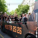 GRAZ, AUSTRIA, 26, Apr, 2026, Meisterfeier Graz 99ers. Image shows 99ers in the open deck bus. Photo: Werner Krainbucher