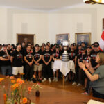 GRAZ, AUSTRIA, 26, Apr, 2026, Meisterfeier Graz 99ers. Image shows mayor Elke Kahr welcoming the team in the city hall for signing in the golden book. Photo: Werner Krainbucher