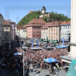 GRAZ, AUSTRIA, 26, Apr, 2026, Meisterfeier Graz 99ers. Image shows crowded Graz mai square and the Graz clock tower. Photo: Werner Krainbucher