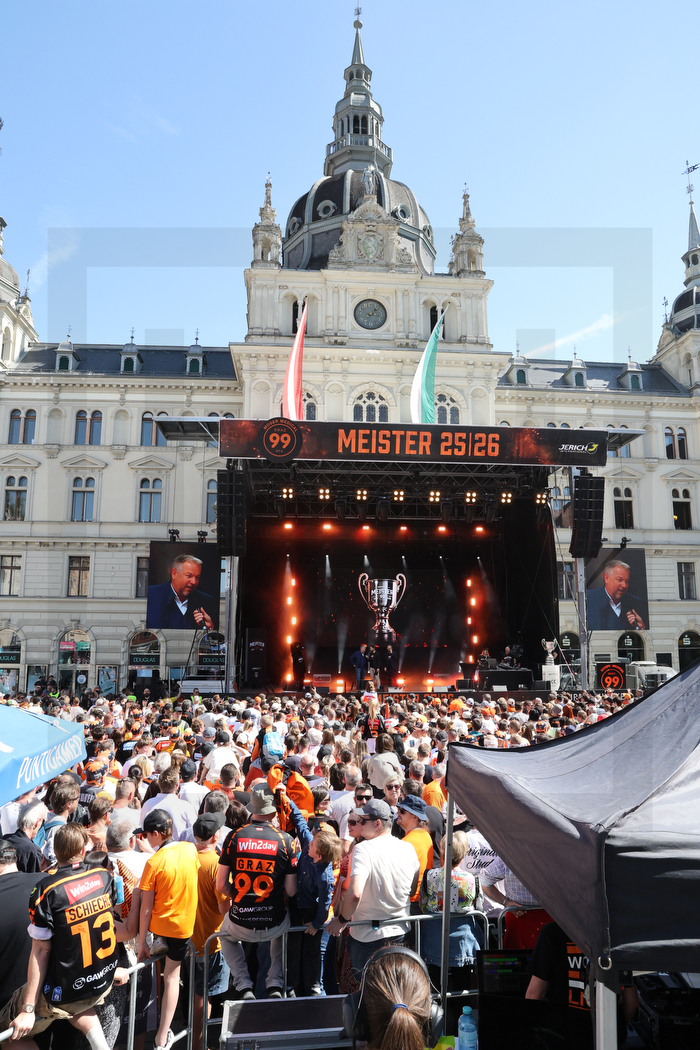 GRAZ, AUSTRIA, 26, Apr, 2026, Meisterfeier Graz 99ers. Image shows crowded Hauptplatz and city hall. Photo: Werner Krainbucher