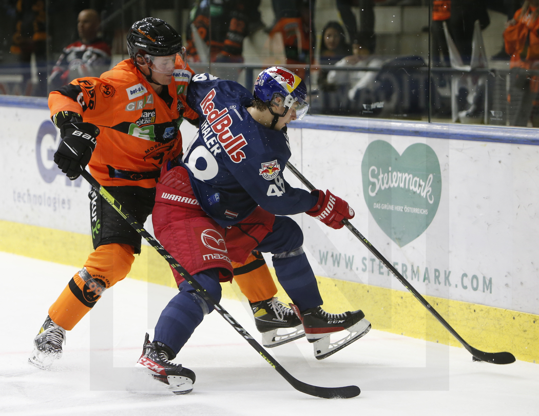 WK20211024_0156 24. Oktober 2021 1050 × 810 Photo Gallery ICEHL Round 12 Graz99ers – EC Red Bull Salzburg 3:2 SO GRAZ, AUSTRIA, 24.Oct. 2021 – Moser Medical Graz 99ers vs. EC Red Bull Salzburg. Image shows Carl ACKERED #8 (Moser Medical Graz 99ers) & Lucas THALER #48 (EC Red Bull Salzburg). Photo: Werner Krainbucher