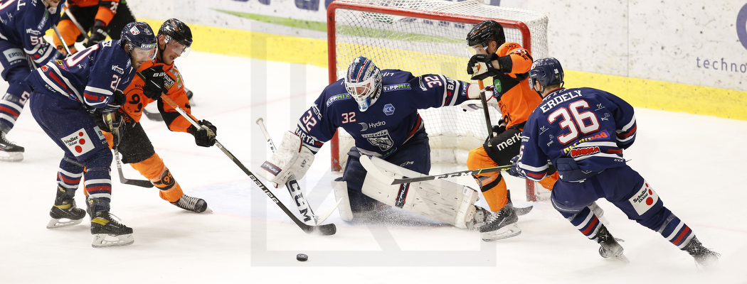 GRAZ, AUSTRIA, 11.Feb. 2022 – Moser Medical Graz 99ers vs. Hydro Fehervar AV 19. Image shows Gleason FOURNIER #20 (Hydro Fehervar AV 19), Simon HJALMARSSON #11 (Moser Medical Graz 99ers), Rasmus TIRRONEN #32 (Hydro Fehervar AV 19), Ken OGRAJENSEK #18 (Moser Medical Graz 99ers) & Csanad ERDELY #36 (Hydro Fehervar AV 19). Photo: Werner Krainbucher
