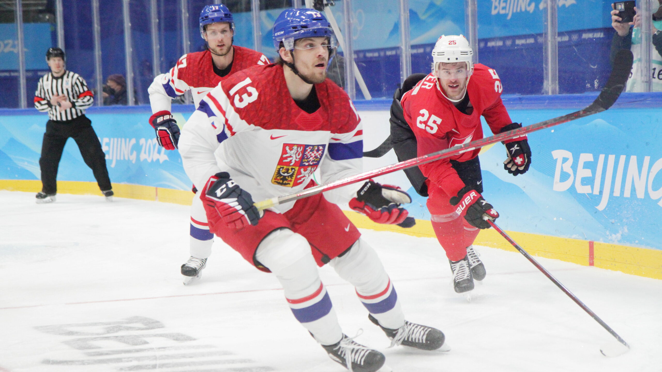 pIMG_9455 15. Februar 2022 2560 × 1440 Photo Gallery Olympic Games 2022 Hockey Tournament Qualifikation CZE – SUI 2:4 Jiri Smejkal #13, Mirco Müller #25, Olympic Games 2022 Hockey Tournament Qualifikation CZE – SUI National Indoor Stadium, Beijing © Andreas Robanser