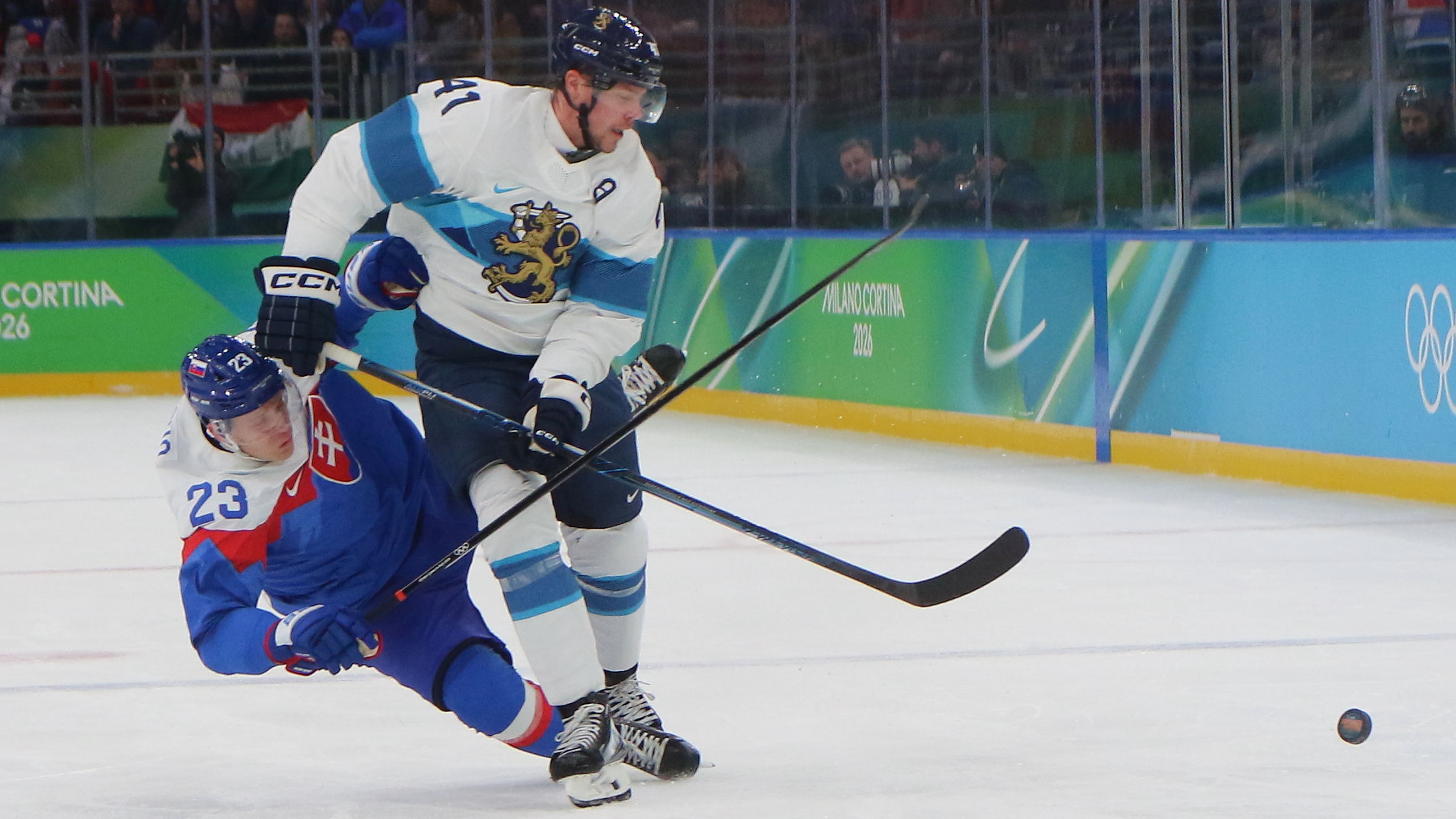 Adam Liska #23, Miro Heiskanen #41, Olympic Games 2026 Mens Bronze Medal Game SVK – FIN, Milano Santa Giulia Arena, © Puckfans.at / Andreas Robanser