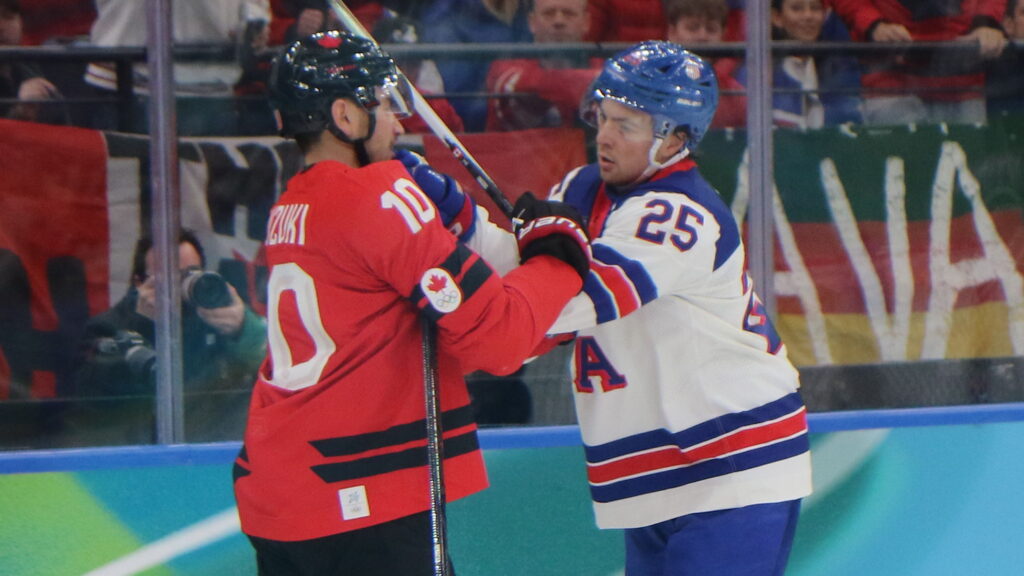 Nick Suzuki #10, Charlie McAvoy #25, Olympic Games 2026 Mens Gold Medal Game CAN – USA, Milano Santa Giulia Arena, © Puckfans.at / Andreas Robanser