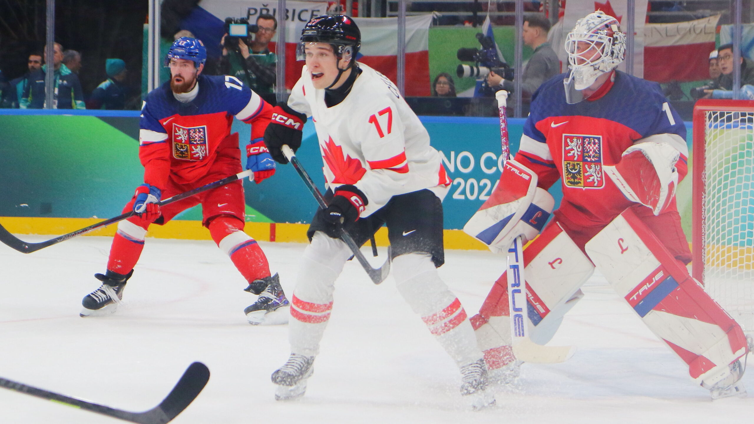 a6T4A7485 12. Februar 2026 2560 × 1440 Photo Gallery Olympic Games 2026 Mens Hockey CZE – CAN 0:5 Filip Hronek #17, Macklin Celebrini #17, Lukas Dostal #1, Olympic Games 2026 Mens Hockey CZE – CAN, Milano Santa Giulia Arena, © Puckfans.at / Andreas Robanser