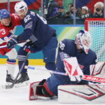 Floran Douay #91,Daniel Vladar #80 , Olympic Games 2026 Mens Hockey FRA – CZE, Milano Santa Giulia Arena, © Puckfans.at / Andreas Robanser
