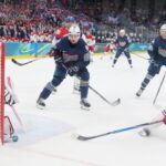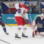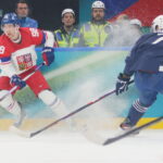 Yohann Auvitu #18, Tomas Kundratek #84, Olympic Games 2026 Mens Hockey FRA – CZE, Milano Santa Giulia Arena, © Puckfans.at / Andreas Robanser