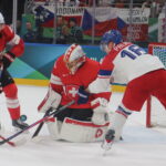 Radko Gudas #3, Timo Meier #28, Lukas Dostal#1, Olympic Games 2026 Mens Hockey SUI – CZE , Santa Giulia Arena, Milano © Puckfans.at / Andreas Robanser