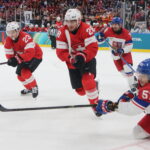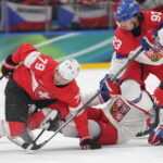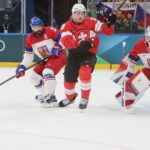 Michal Kempny #6, Lukas Dostal #1, Sven Andrighetto #85, Olympic Games 2026 Mens Hockey SUI – CZE , Santa Giulia Arena, Milano © Puckfans.at / Andreas Robanser