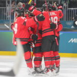 Sandra Abstreiter #35, Marie-Philip Poulin #29, Natalie Spooner #24, Sarah Fillier #10, Olympic Games 2026 Womens Hockey QF CAN – GER, Milano Ice Park, © Puckfans.at / Andreas Robanser