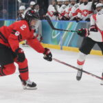 Marie-Philip Poulin #29, Stefanie Wetli #18, Olympic Games 2026 Womens Semifinal CAN – SUI, Santa Giulia Arena, Milano © Puckfans.at / Andreas Robanser