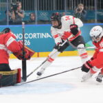 Emma Maltais #27, Lara Stalder #7, Olympic Games 2026 Womens Hockey SUI – CAN, Milano Rho Ice Park, © Puckfans.at / Andreas Robanser