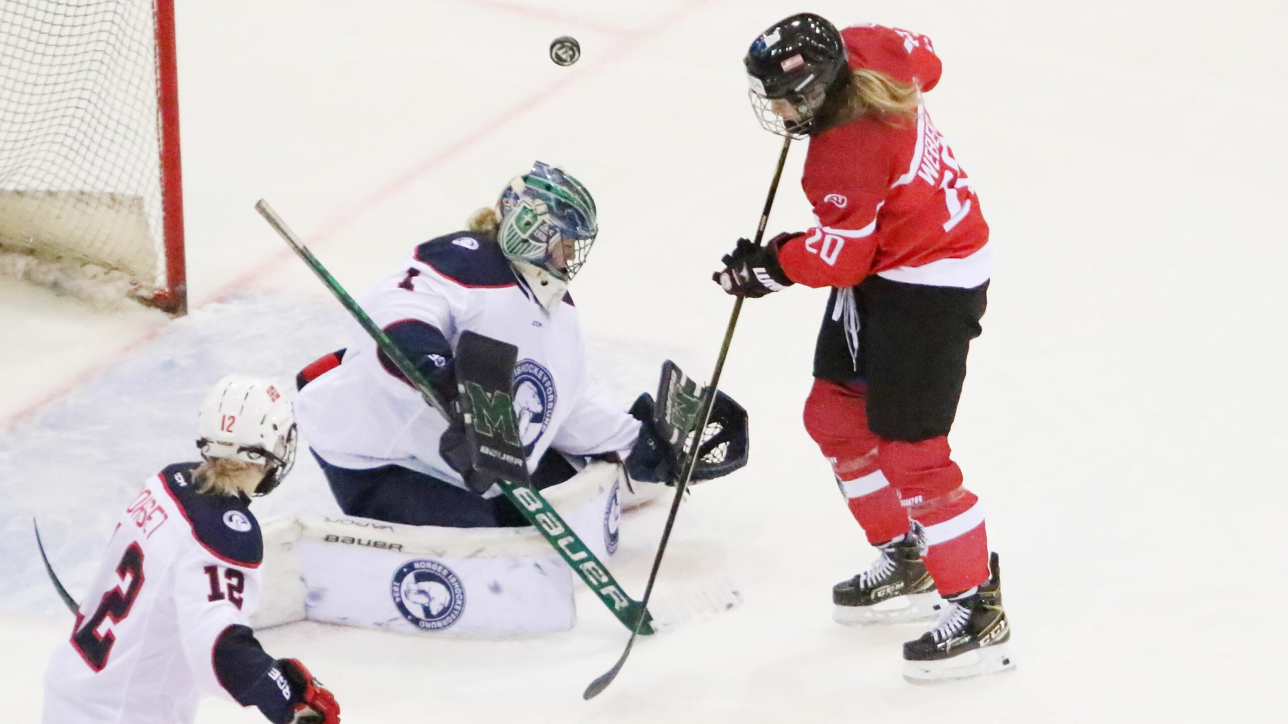 IMG_0031 7. November 2021 2560 × 1440 Photo Gallery Olympic Pre-Qualification Women Pre-Game Austria – Norway 4:0 Olympic Pre-Qualification Women: Pre-Game Austria – Norway Ena Nystrom #1, Janine Weber #20 Erste Bank Arena, Vienna © Puckfans.at/Andreas Robanser