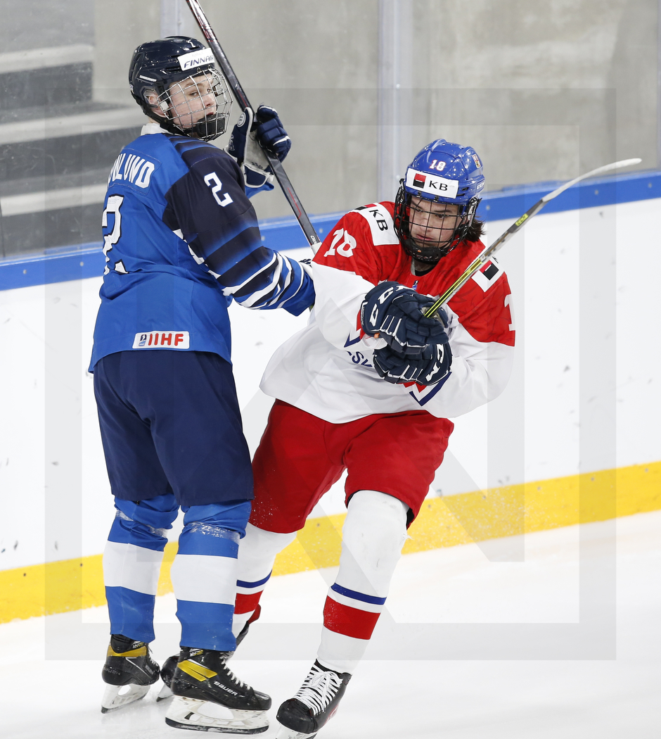 WK20220501_0217 1. Mai 2022 940 × 1050 PHOTO GALLERY: U18 IIHF World Championship, Bronze Medal Game, FIN-CZE 4:1 LANDSHUT, GERMANY, 01.May. 2022 – FIN vs. CZE. Image shows Thomas GRÖNLUND #2 (Finland) & Matyas MELOVSKY #18 (Czech Republic). Photo: Werner Krainbucher