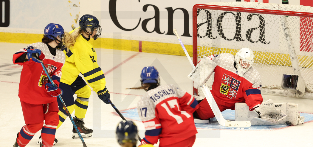SYDNEY, CANADA, 18, Jan, 2026, U18 Woman’s Worlds, Bronze Medal Game, CZE vs. SWE. Image shows Vera STASTKOVA #25 (Czech Republic), Nellie NOREN #25 (Sweden), Johanna TISCHLER #17 (Czech Republic) & Veronika ORTOVA #30 (Czech Republic). Photo: Werner Krainbucher