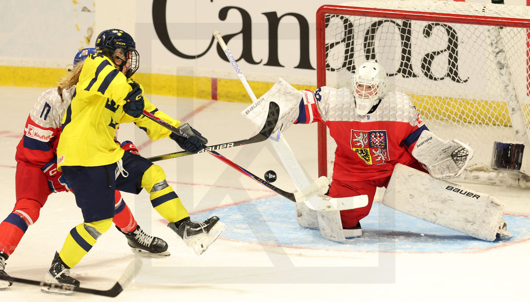 Johanna TISCHLER #17 (Czech Republic), Ines NYGREN #20 (Sweden) & Veronika ORTOVA #30 (Czech Republic)SYDNEY, CANADA, 18, Jan, 2026, U18 Woman’s Worlds, Bronze Medal Game, CZE vs. SWE. Image shows . Photo: Werner Krainbucher
