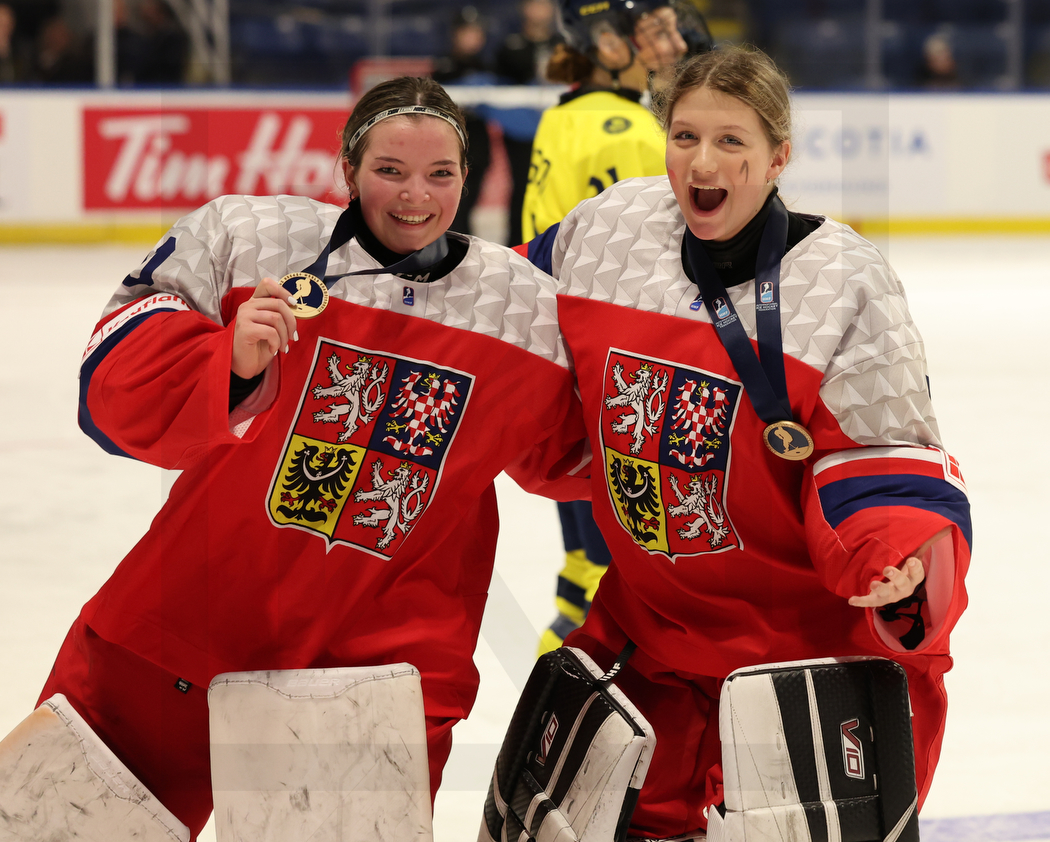 SYDNEY, CANADA, 18, Jan, 2026, U18 Woman’s Worlds, Bronze Medal Game, CZE vs. SWE. Image shows Veronika ORTOVA #30 (Czech Republic) & Lili CHMELAROVA #1 (Czech Republic). Photo: Werner Krainbucher