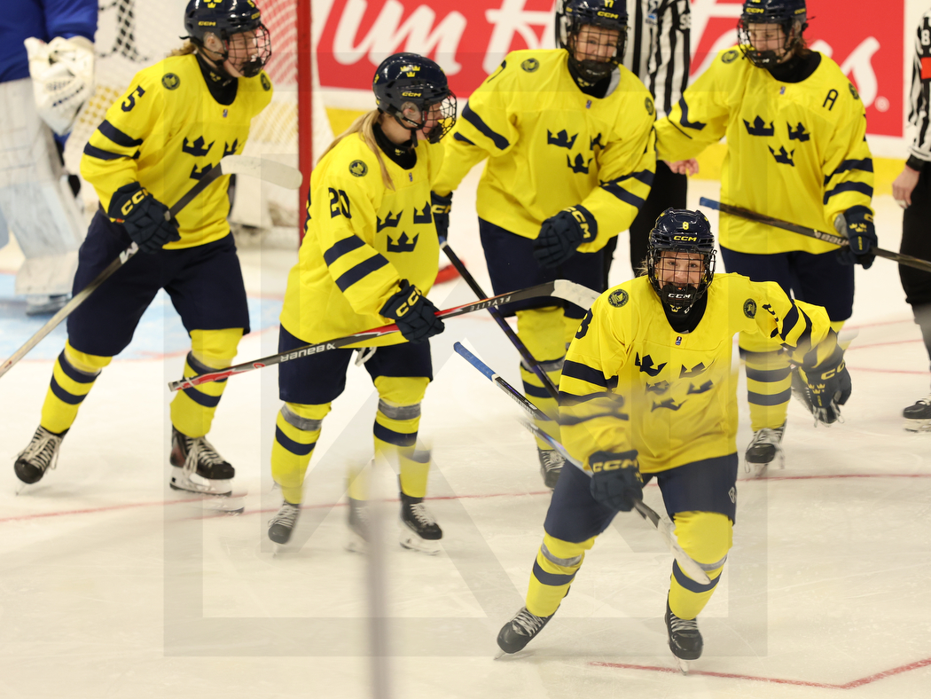 SYDNEY, CANADA, 15, Jan, 2026, U18 Woman’s Worlds, Quarterfinal, SWE vs. SVK. Image shows goal celebration Sweden. Photo: Werner Krainbucher