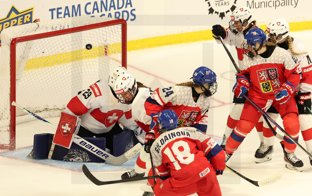 WK20260115_1192 15. Januar 2026 1050 × 660 PHOTO GALLERY U18 WOMAN’S WORLDS QF Game 1+2 SYDNEY, CANADA, 15, Jan, 2026, U18 Woman’s Worlds, Quarterfinal, CZE vs. SUI. Image shows game winning goal for Czech Republic. Photo: Werner Krainbucher
