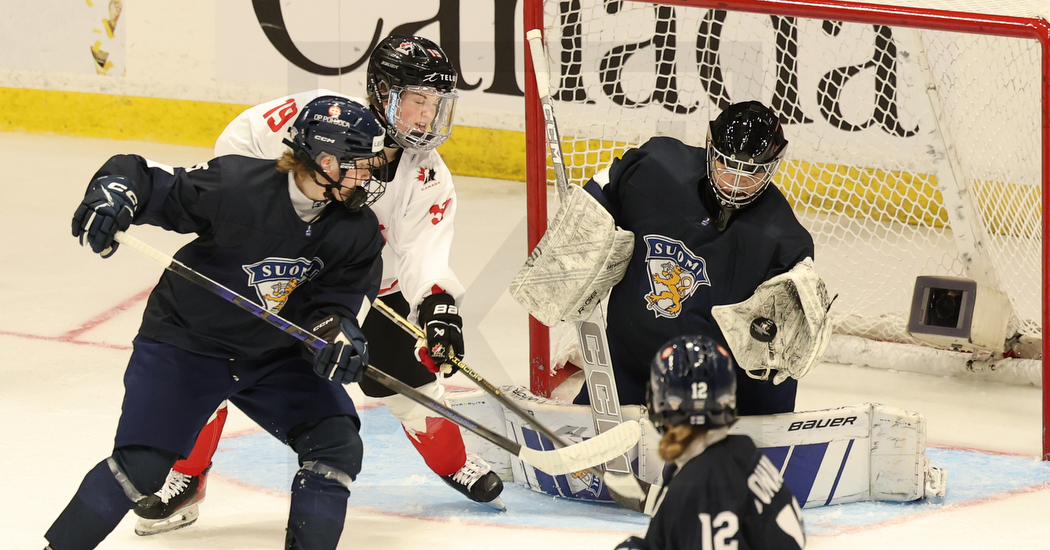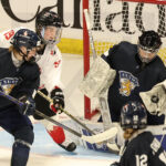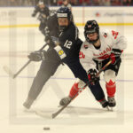 SYDNEY, CANADA, 15, Jan, 2026, U18 Woman’s Worlds, Quarterfinal, CAN vs. FIN. Image shows Kate VIEL #28 (Canada) & Aino LEHIKOINEN #11 (Finland). Photo: Werner Krainbucher