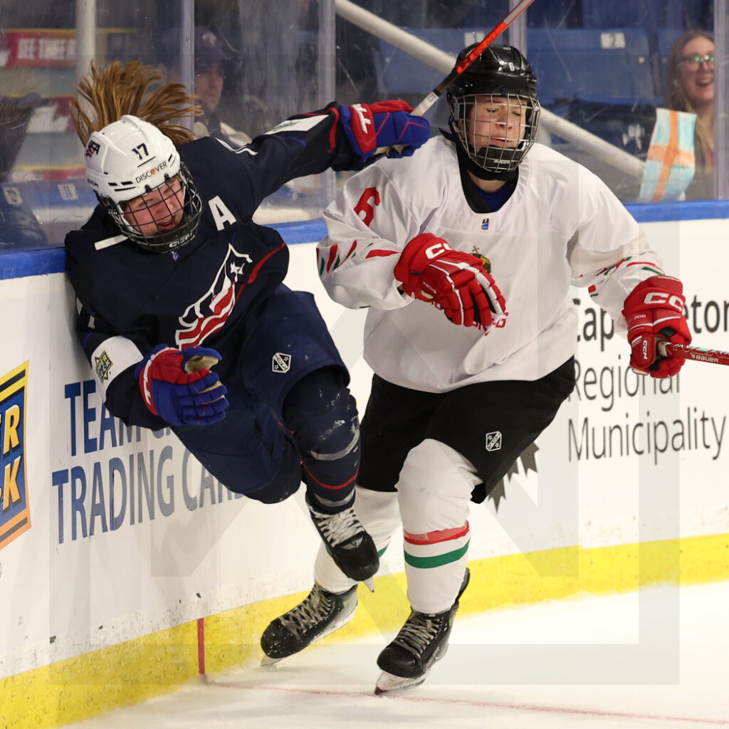WK20260115_2093 16. Januar 2026 1050 × 1050 PHOTO GALLERY U18 WOMAN’S WORLDS QF GAME 3+4 SYDNEY, CANADA, 15, Jan, 2026, U18 Woman’s Worlds, Quarterfinal, USA vs. HUN. Image shows Madelyn KIMBREL #17 (USA) & Lili HAJDU #6 (Hungary). Photo: Werner Krainbucher
